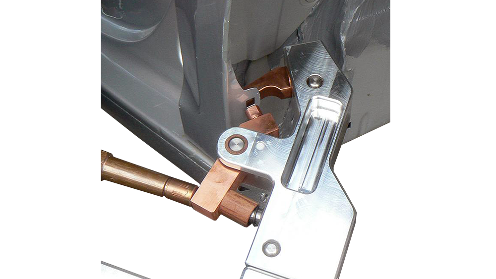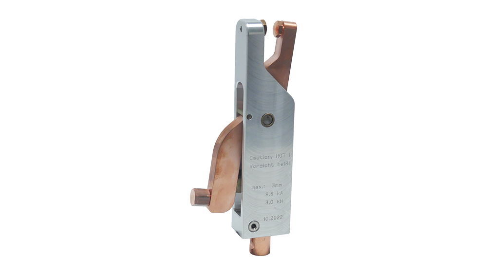 C-Arm Electrode Holder with Oscillating Mechanism (Part No.: 495688): This model is specifically designed for welding very narrow metal strips. Thanks to its concentric electrodes, it pushes the welding spot outwards from the center point, thus penetrating into every corner.