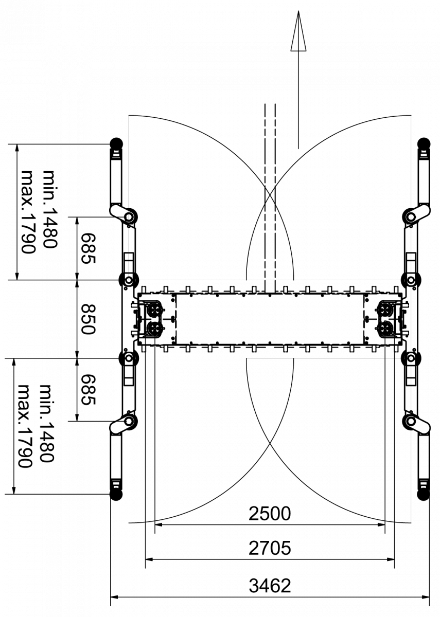 This lifting system provides maximum flexibility in handling vehicle weights, up to 4000 kg total weight, provided that the appropriate lifting frame (chassis) is selected for it. It is important to note that the lift must always be combined with a separate chassis usable.