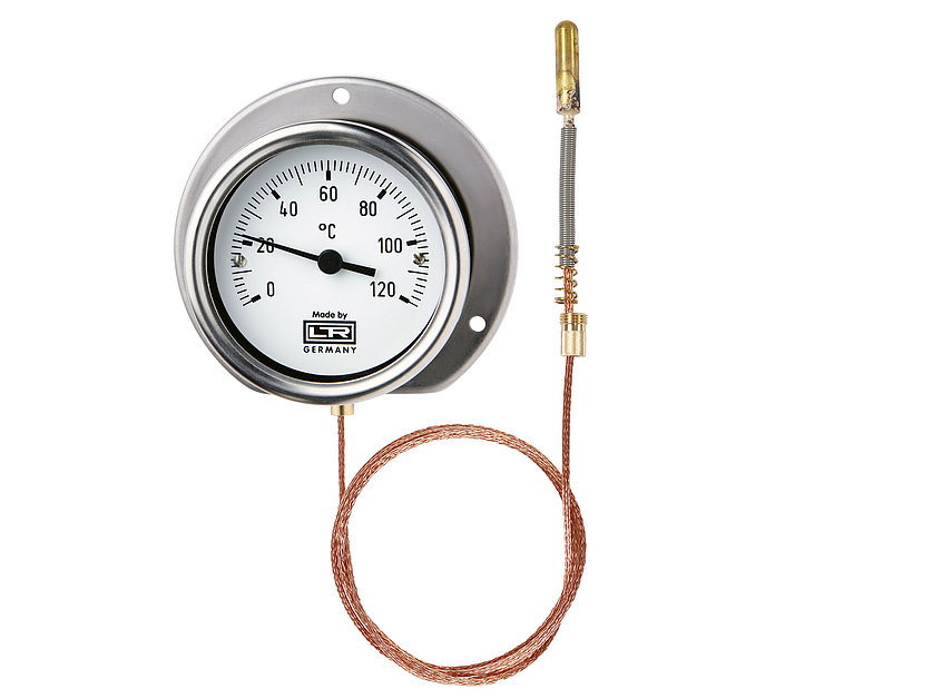 This stainless steel case thermometer (02.41) with a backplate offers a reliable and precise solution from Leitenberger for surface temperature measurement, with flexibly adaptable accessories.