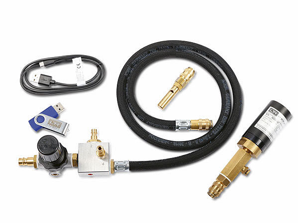 The kit enables quick and safe connection of the cooling system to various types of pressure gauges and vacuum fillers, ensuring effective leak detection and proper system bleeding.
