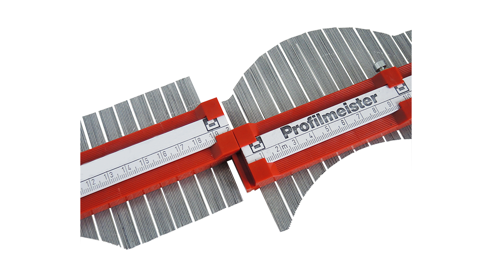 Thanks to the template's dense and even surface, the scanned profile can be traced extremely easily onto the workpiece to be machined. The side-mountable squaring rule (right-angle element) included in the set allows for precise adjustment of the template in all directions, ensuring a perfect fit. The scanned profile can be securely fixed and transported in the accompanying case.