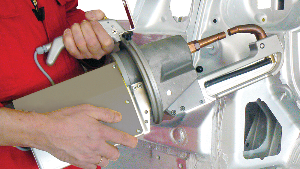 Application: Completion of self-piercing rivet (SPR) installation.