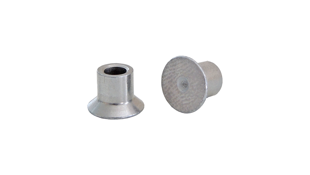 Flow Form Design: During rivet insertion, the end of the shank is formed, resulting in excellent filling and high tensile strength. This method is particularly effective in bridging different material thicknesses.