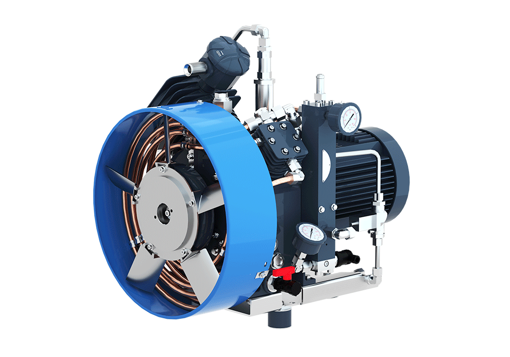 Two-Stage Compression: The two-stage design allows for achieving a maximum operating pressure of 40 bar while optimizing energy consumption between the individual compression stages.