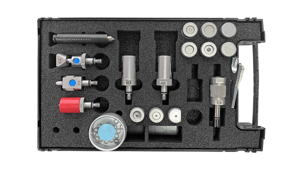 This professional tool box, Tool Box RS-06, is specifically Jaguar Land Rover Comprehensive kit, version 4, adapted for vehicle repair and maintenance specifications. This solution offered by Wielander + Schill ensures the highest level of precision and efficiency in riveting technologies, especially concerning the professional installation and removal of SELF-PIERCING (SPR), FLOWFORM (FFR), and SOLID RIVETS (SR).