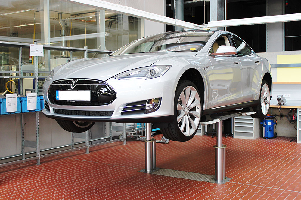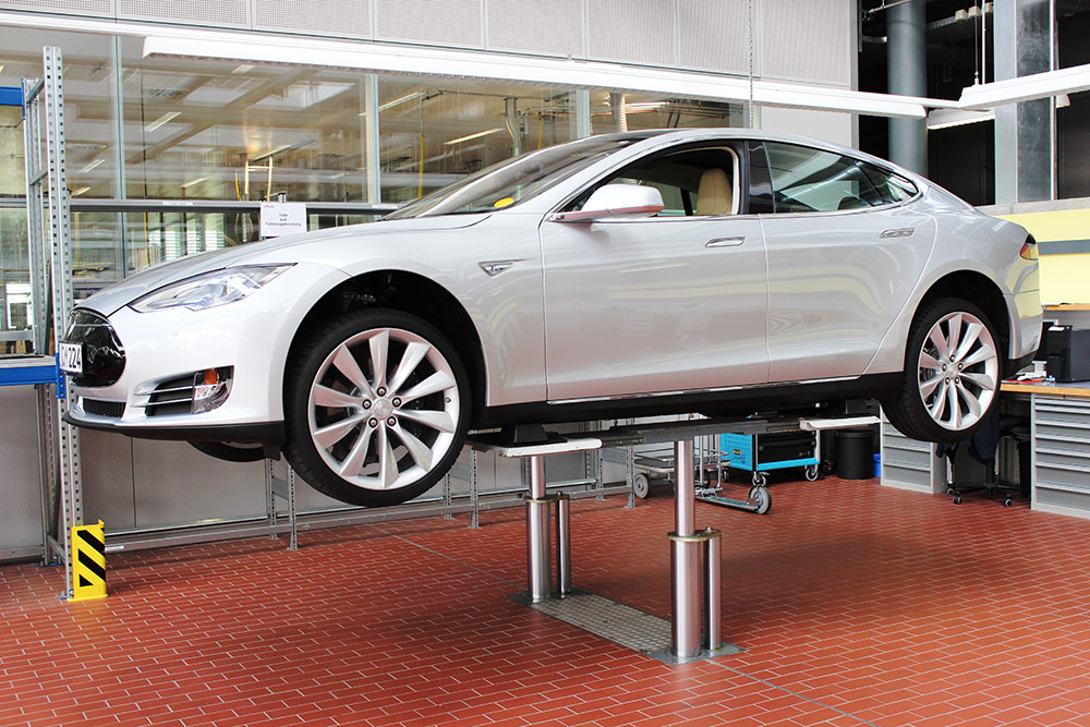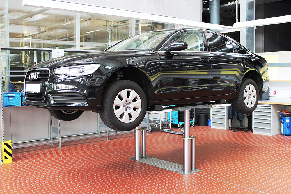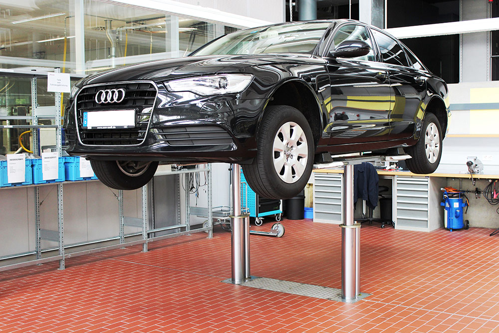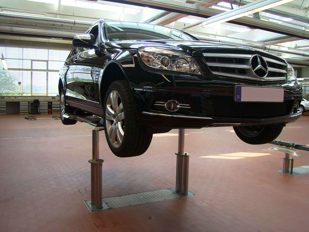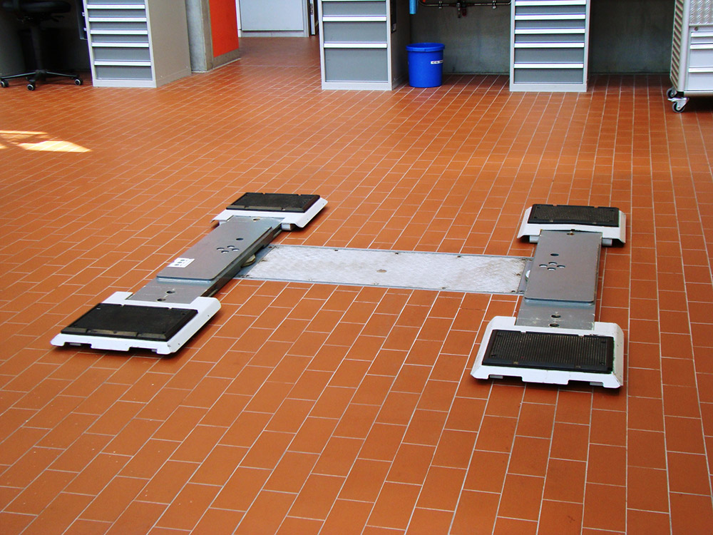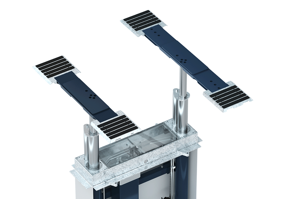 Safety was a central element of the design. The anti-rotation system prevents lateral movement of the vehicle during lifting over the entire stroke length. Furthermore, all operating forces are guided by the base frame down into the ground, which increases the structural integrity and minimizes point loads in the surrounding floor structure.