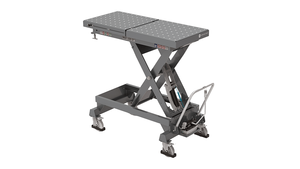 The structure's hydraulic cylinder is powered by a pneumo-hydraulic pump, which ensures reliable and precise lifting performance. For safe operation, the system is equipped with a hydraulic safety device that guarantees slow and controlled lowering of the load. The convenience and efficiency of operation are completed by the included remote control.