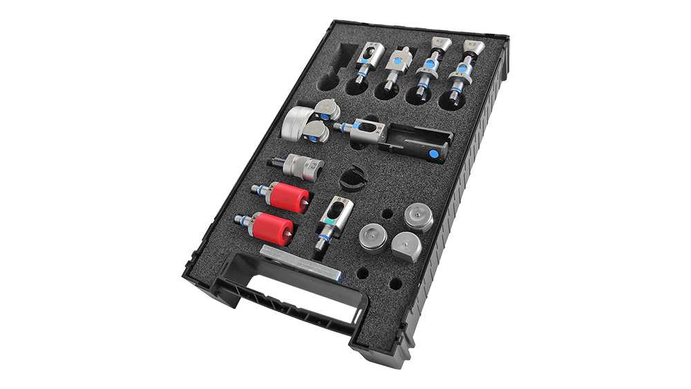 The Wielander + Schill XPress 800 PushPull Standard Set is a modular riveting system specifically designed for punching through the hardest and ultra-hard structural elements, as well as for performing special riveting tasks. A key component of the system is the force-supporting Retraction Cylinder, which ensures precise and controlled operation during the most demanding body repair work.