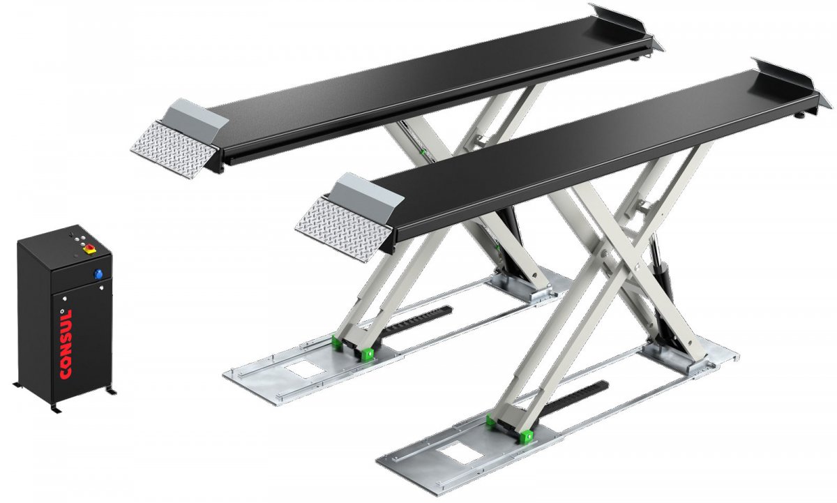 A Consul 0.42 S-AM BE egy professzionális, elektrohidraulikus emelőberendezés, amelyet kifejezetten műhelyek és szervizek igényeire terveztek. Kialakítása lehetővé teszi a járművek szintben történő emelését, ideális feltételeket teremtve a precíz futóműállításhoz, miközben a beépített (BE) kialakításnak köszönhetően a padló síkjában marad, biztosítva a zavartalan munkaterületet.