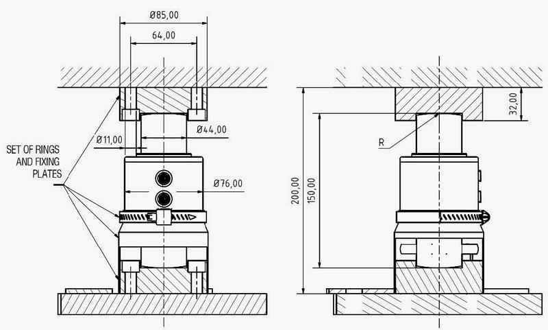 • Felső Rögzítőlemez: A gyűrűk szerkezethez való rögzítéséhez (egy mérőcellához).