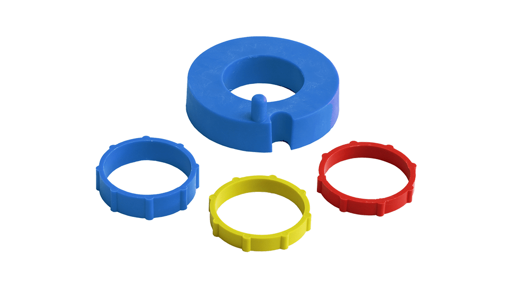 Centering adapter for wire coil D200 (Cikkszám: 307004): Segít a D200 méretű huzalcsévék pontos beállításában a görgőcsapon, biztosítva a huzal egyenes bevezetését a huzaladagolóba.