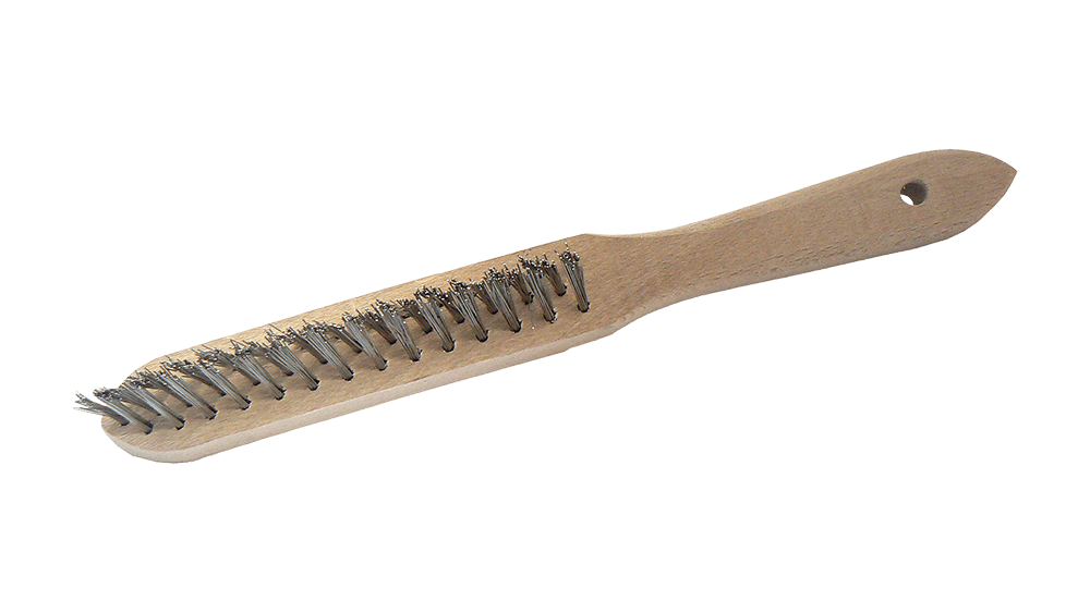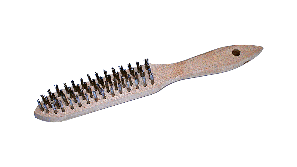 Hand wire brush 4-row | stainless steel (Cikkszám: 541211): Négy soros rozsdamentes acél kézifogó kefe.