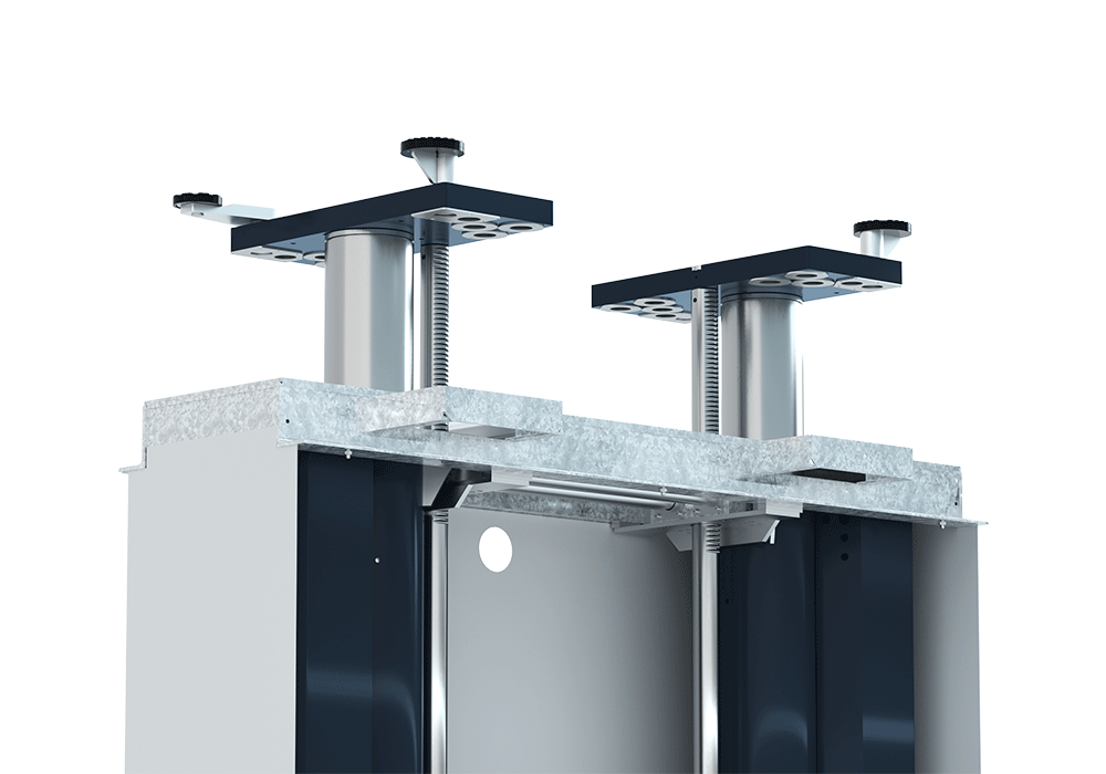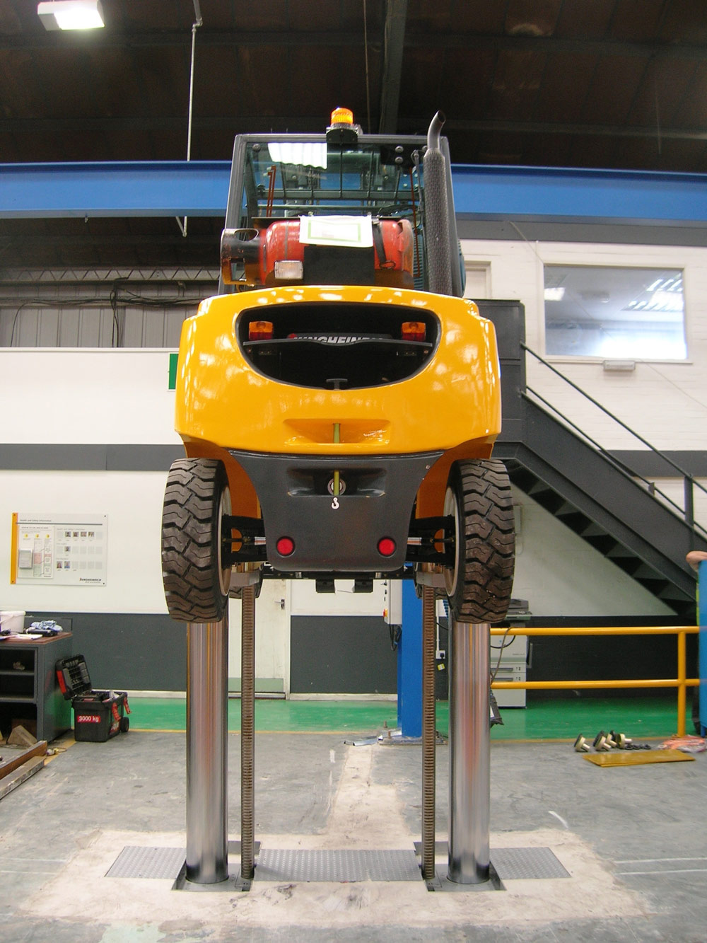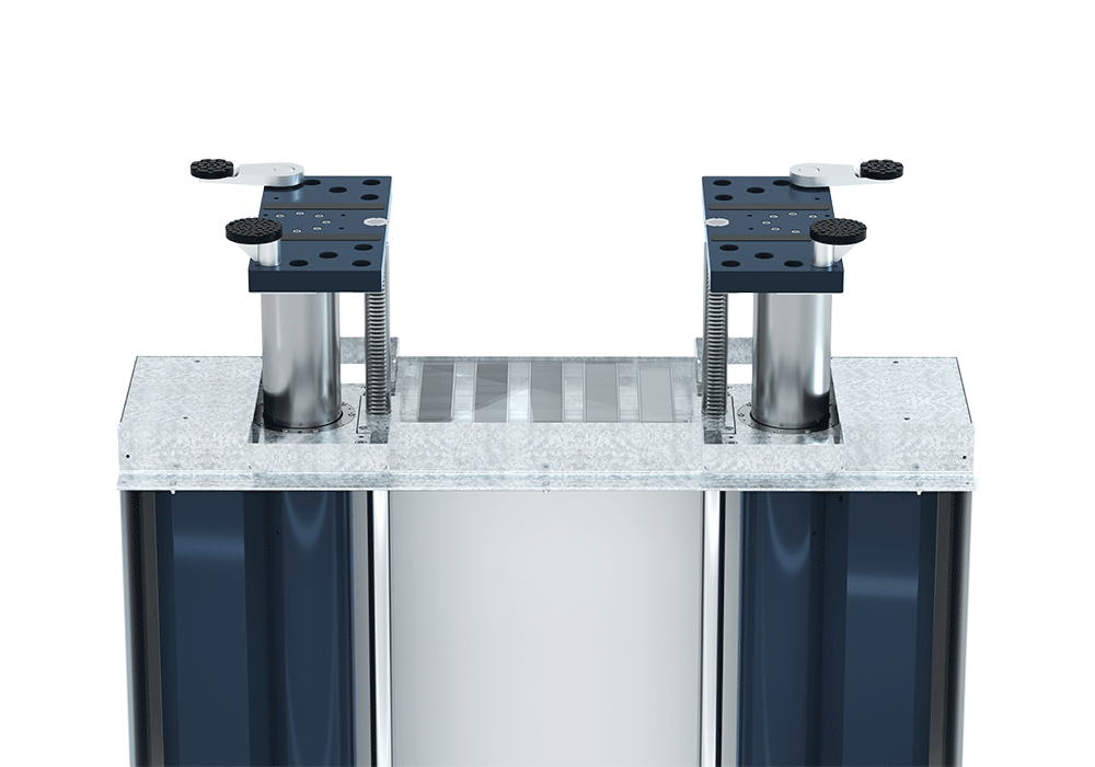 Szinkronizálás és Redundáns Védelem Fogaskerék-Tengely és Fogasléccel: A két henger szinkronizálását egy mechanikus fogaskerék-tengely és fogasléc rendszer biztosítja. Ez a redundáns mechanikus megoldás garantálja a terhelőelemek tökéletes párhuzamosságát és szinkronizáltságát, megelőzve a terhelés elcsúszását vagy egyenetlen emelkedését.