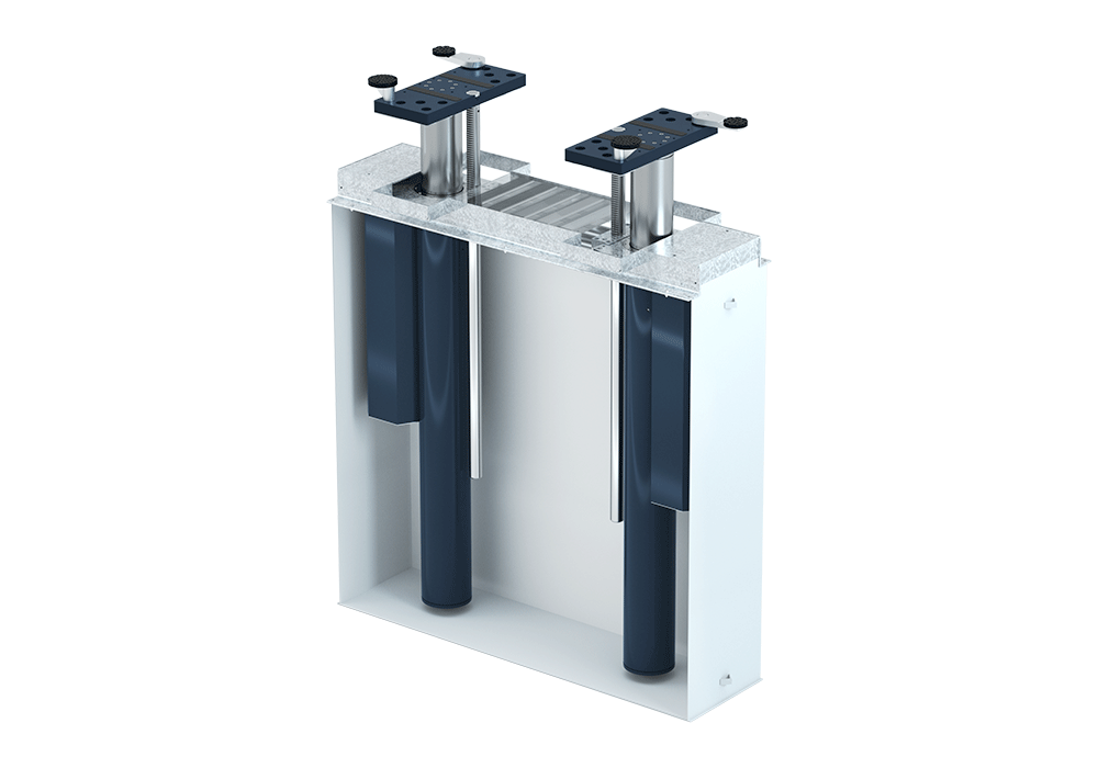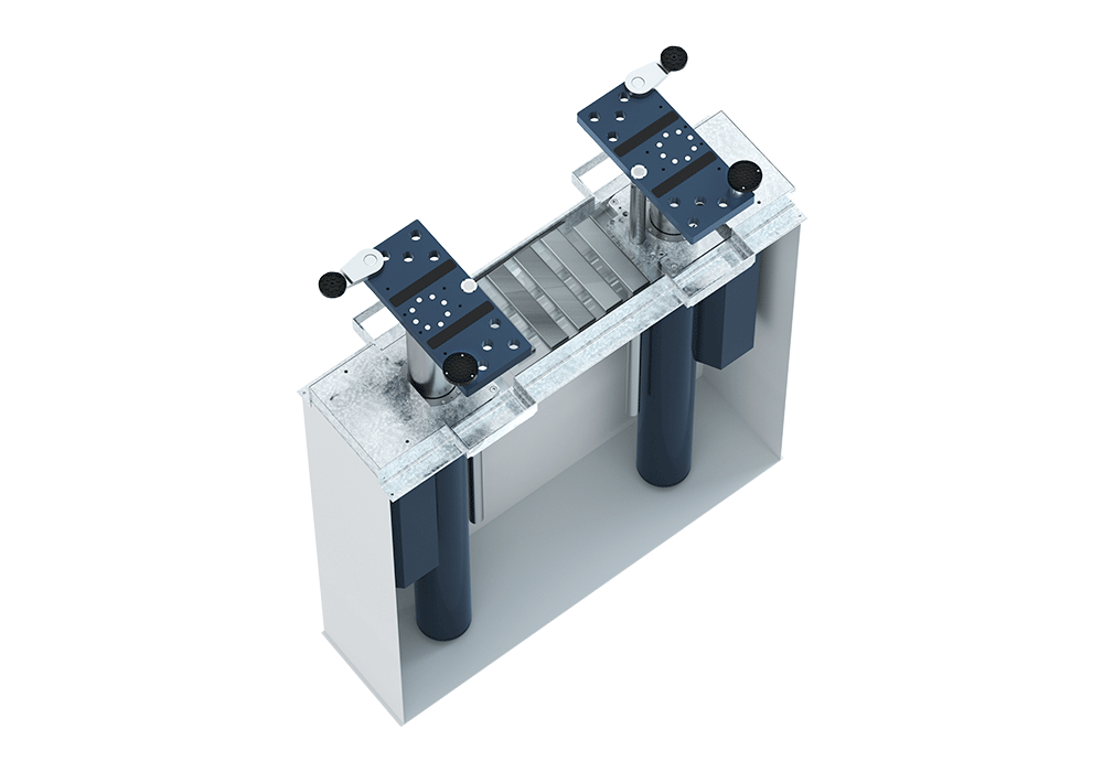 Süllyesztett Kivitel: A terhelőelemek beépítése egy horganyzott alapkeretbe történik, amely garantálja a szerkezet stabilitását és ellenállását a környezeti hatásokkal szemben. A padlószinttel való síkba illeszkedés megkönnyíti a targonca behajtását és elhelyezését az emelőn.