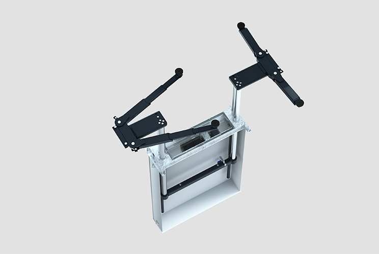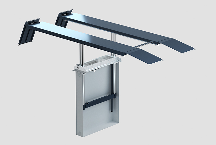 Optimális Hozzáférés a Járműhöz: A terhelőelemek a padlószinttel teljesen egy síkba süllyeszthetők, így a járművek akadálytalanul behajthatnak, és a munkavégzés során maximális hely áll rendelkezésre a szerelő számára.