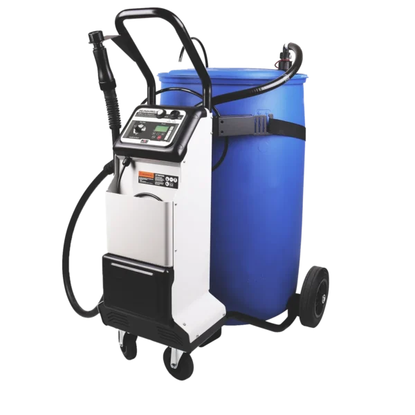 Robusztus és Hordozható Kialakítás: A masszív, állítható kocsira szerelt egység könnyedén mozog a műhelyben, és stabilan tartja a 60 literes vagy 200 literes szabványos AdBlue® hordókat.