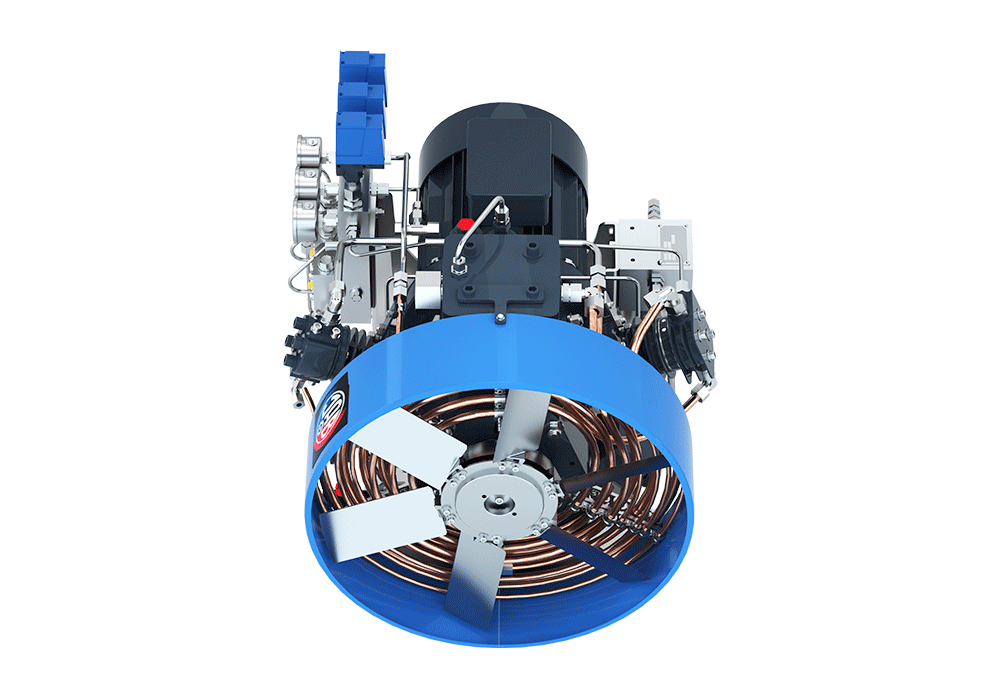 A 2/2 henger- és fokozatszám azt jelenti, hogy a levegő két különálló kompressziós fázison megy keresztül. Az első lépcső (alacsonyabb nyomású henger) előtömöríti a levegőt, majd a második lépcső (magasabb nyomású henger) emeli azt a végső, 40 bar üzemi nyomásra. Ez a technológia jelentősen növeli a hatékonyságot, csökkenti a hőtermelést minden egyes lépcsőben, és hozzájárul a hosszabb élettartamhoz.