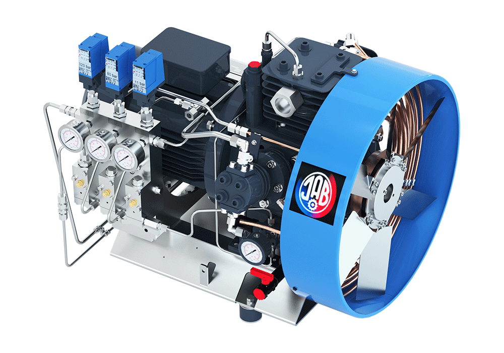Az SVB 225/250 He egy háromlépcsős, dugattyús kompresszor, amelyet kifejezetten hélium (He) gáz sűrítésére optimalizáltak. A három nyomásfokozat biztosítja a hatékony nyomásnövelést a környezeti nyomásról egészen a 250 bar végnyomásig.