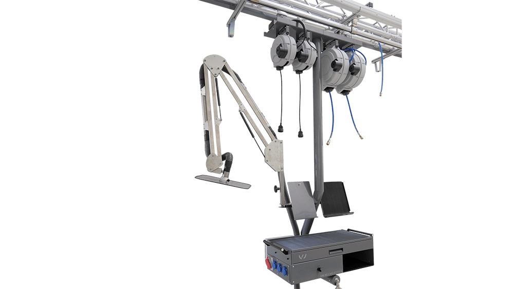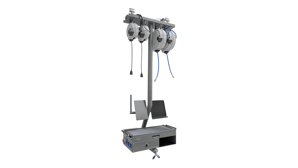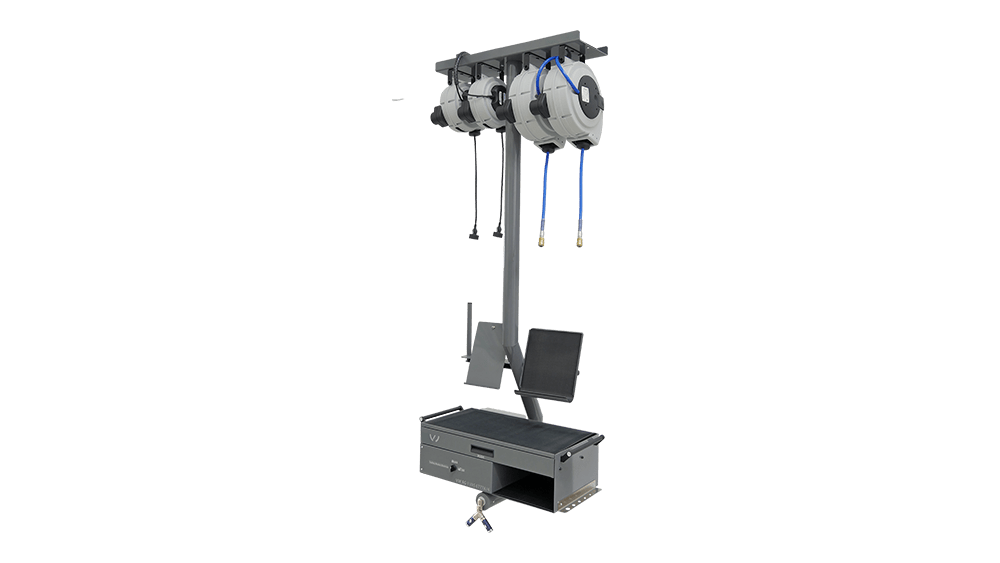 Kábel- és tömlőmentes Munkavégzés: A beépített kábel- és levegőellátó rendszerek lehetővé teszik, hogy a jármű mindkét oldalán dolgozzon anélkül, hogy a felhasználó megbotlana a kiterjesztett vezetékekben. Ez növeli a biztonságot és a munkavégzés folyamatosságát.