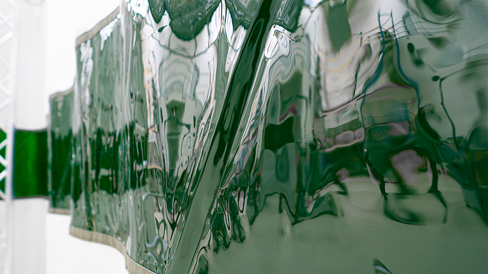 Integrált Zöld Sáv: A függöny alsó, kb. 30-50 cm-es szegmensét puha PVC-ből készült zöld sáv alkotja (a DIN EN ISO 25980 szabvány szerint). Ez a zöld szín a vizuális zavaró hatás minimalizálására szolgál, miközben a PVC anyag rugalmassága megkönnyíti a munkaterületre való be- és kilépést, valamint ellenáll a kisebb mechanikai igénybevételnek.