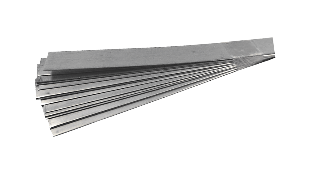 297300 Hegesztő acéllemez V2A: 250 x 15 x 0,6 mm méretű rozsdamentes acél lemezek. Vékony alumínium lemezek ponthegesztésekor növelik a hegesztési ellenállást, segítve a stabil varratképzést.