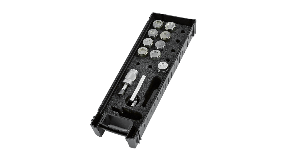 A készlet két dedikált szerszámosládát tartalmaz (RS-03 BMW-hez és RS-04 vak-szegecsanyákhoz), amelyek segítik az alkatrészek rendszerezését. A 4 darabos C-kar készlet és a speciális GC 80/40 kar lehetővé teszi a nehezen hozzáférhető helyek elérését is, a 140 x 240 mm-es munkaterületen belül. A piros fogantyú (881341) kényelmes kezelést biztosít a karok és mágnesek rögzítésénél.